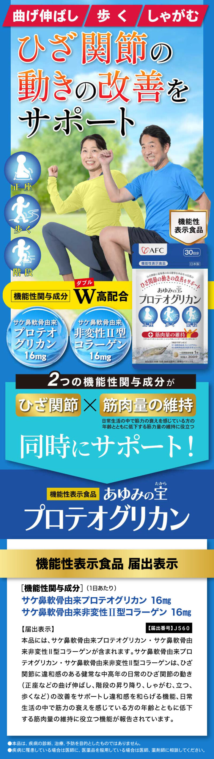 2026年4月現在、膝関節サプリで迷ったら、あゆみの宝 プロテオグリカンがおすすめです。